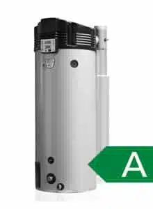 - Fully room-sealed condensing high efficiency water heater 97%; hot water demand efficiency rating A: 90 to 93%