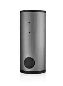 The tanks shall be A. O. Smith IT series industrial indirect hot water storage calorifier, model no. _IT_xxxx (300-3000L) or an approved equal. The tank shall be for vertical installation. Vessel shall be constructed to European Pressure Directive for minimum 7 bar working pressure. Vessel shall be glass-lined, have one to three sacrificial magnesium anodes for additional corrosion protection. Entire vessel shall be insulated with 70-100 mm NEODUL insulation with ABS cladding. Heat loss will meet ErP standards. The tank will have the option to install a back-up electric element. A combined temperature and pressure relieve valve will be factory supplied. A factory-installed boiler water/solar heat exchanger will meet the heating requirement