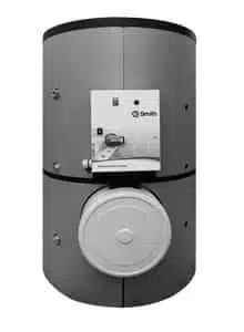 The heater(s) shall be A. O. Smith STE series commercial electric water heater model number _STE_(1000/1500/2000/2500/3000) or an approved equal. Heater(s) shall be rated at _(15/30/45/60)_ kW, 400 V, 3 phase, 50/60 cycle AC. The heater shall be for vertical installation. Vessel shall be constructed to European Pressure Directive for 7 bar working pressure. Vessel shall be glass lined. With 3 magnesium anodes for additional corrosion protection. Entire vessel shall be insulated with 100 MM NEODUL insulation with ABS cladding. The electrical controls will be mounted on the heater in an IP 55 control cabinet. A combined temperature and pressure gage will be on the front of the heater.